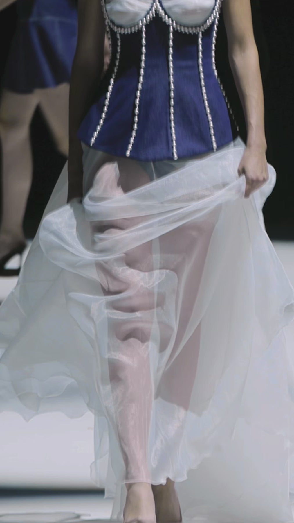 An iconic statement piece that blends bold structure with delicate elegance. This corset features a sculpted sweetheart neckline and is adorned with vertical pearl-trim details that elongate the silhouette. The back is finished with a lace-up closure threaded through metal eyelets, allowing for a customizable, cinched fit. Pair it with a flowing skirt for a runway-ready look, or style it with tailored pants for an edgy, modern evening ensemble.