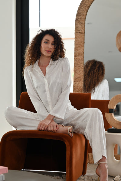 Crafted from luxurious linen, each piece in this collection drapes gracefully, mirroring the fluidity of petals in bloom.